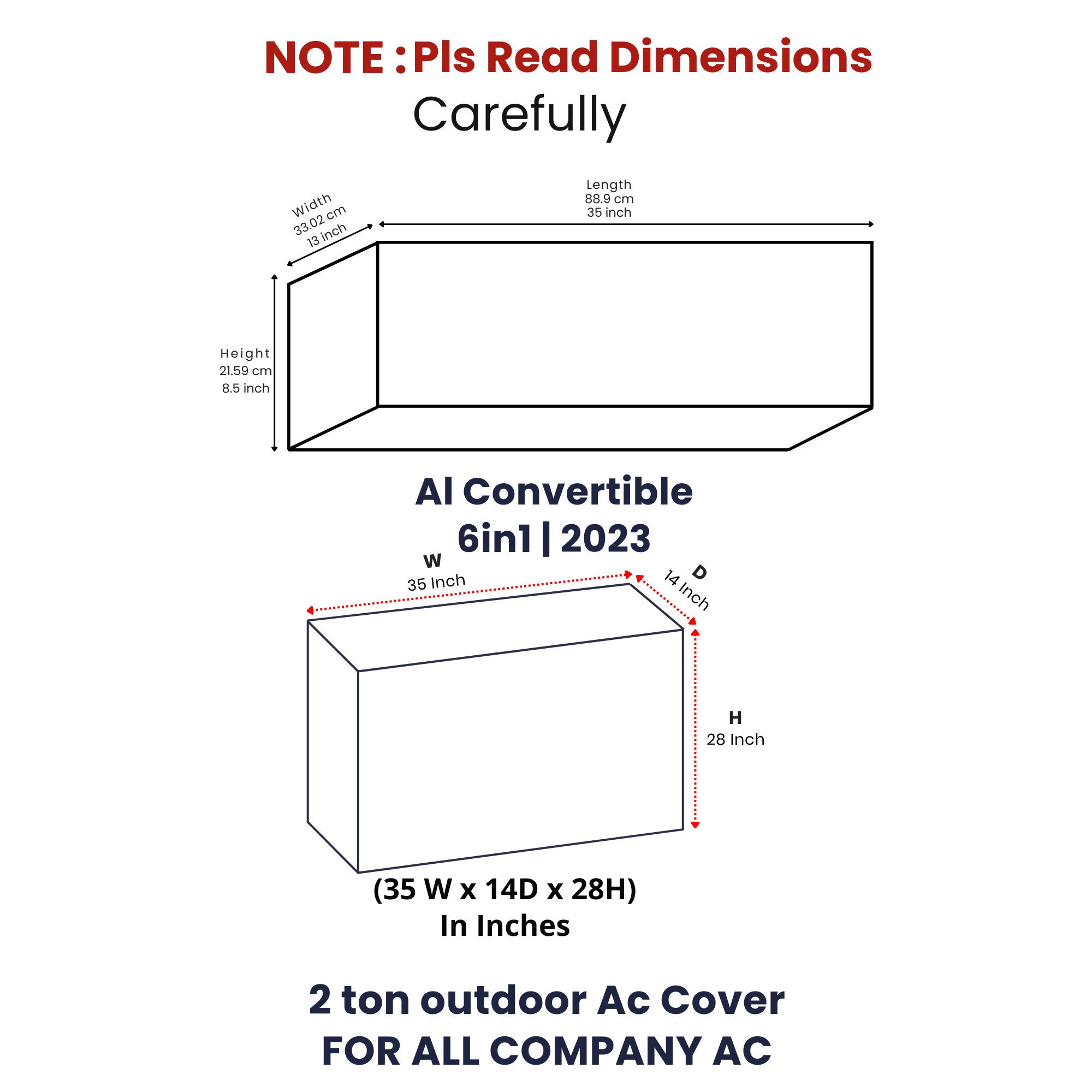 - Specially designed to fit LG 1.5 Ton 5 Star AI Dual Inverter (40”x15”x9”), Daikin 1.5 Ton 3 Star (35”x13”x8.5”), Voltas 1.5 Ton 3 Star (35”x13”x8.5”), and Lloyd 1.5 Ton 3 Star (35”x13”x8.5”) indoor units with outdoor unit compatibility of 35”x28”x14”.