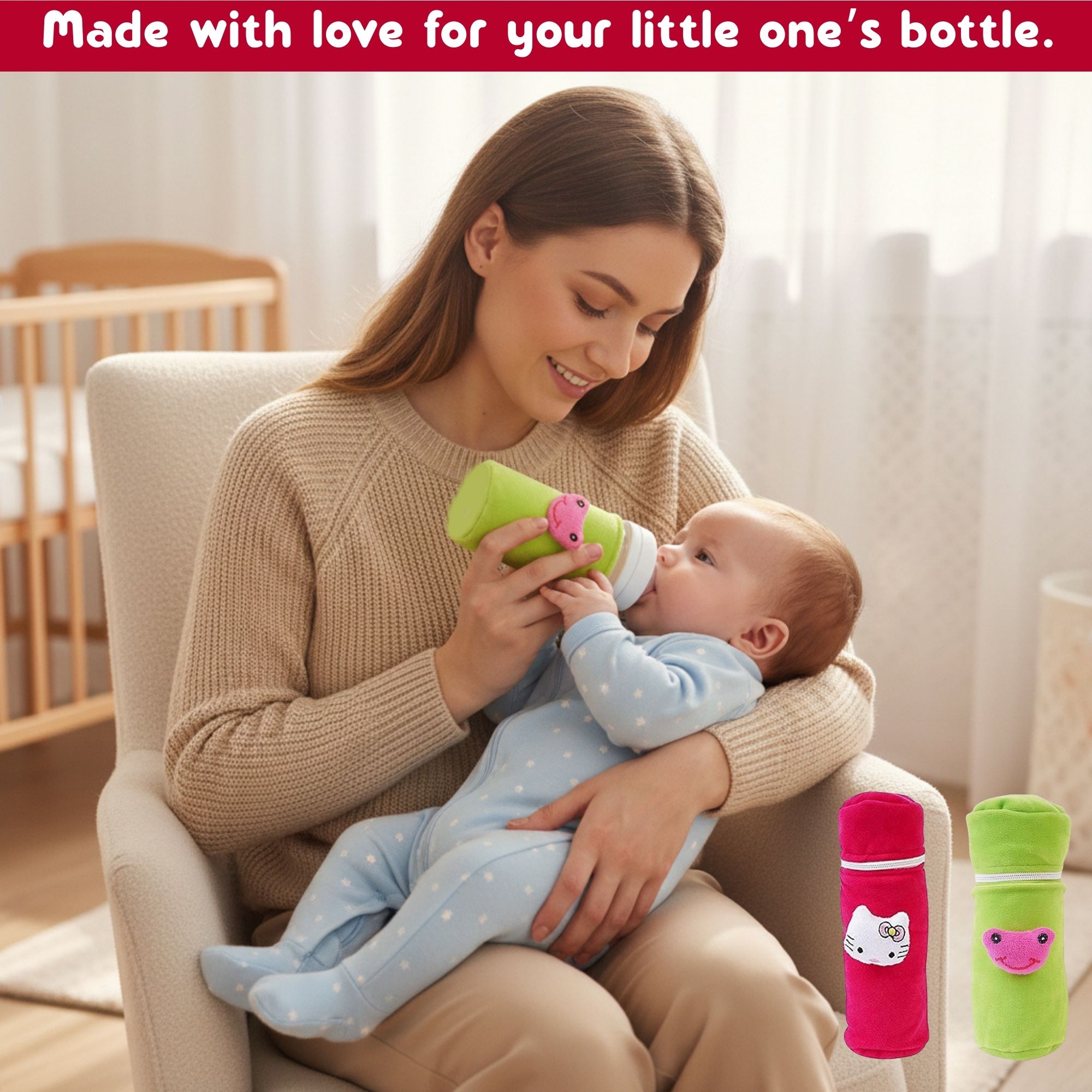 Product Name Soft Plush Stretchable Baby Bottle Covers with Zipper | 120–250 ml | Pack of 2 Cute Animated Design
