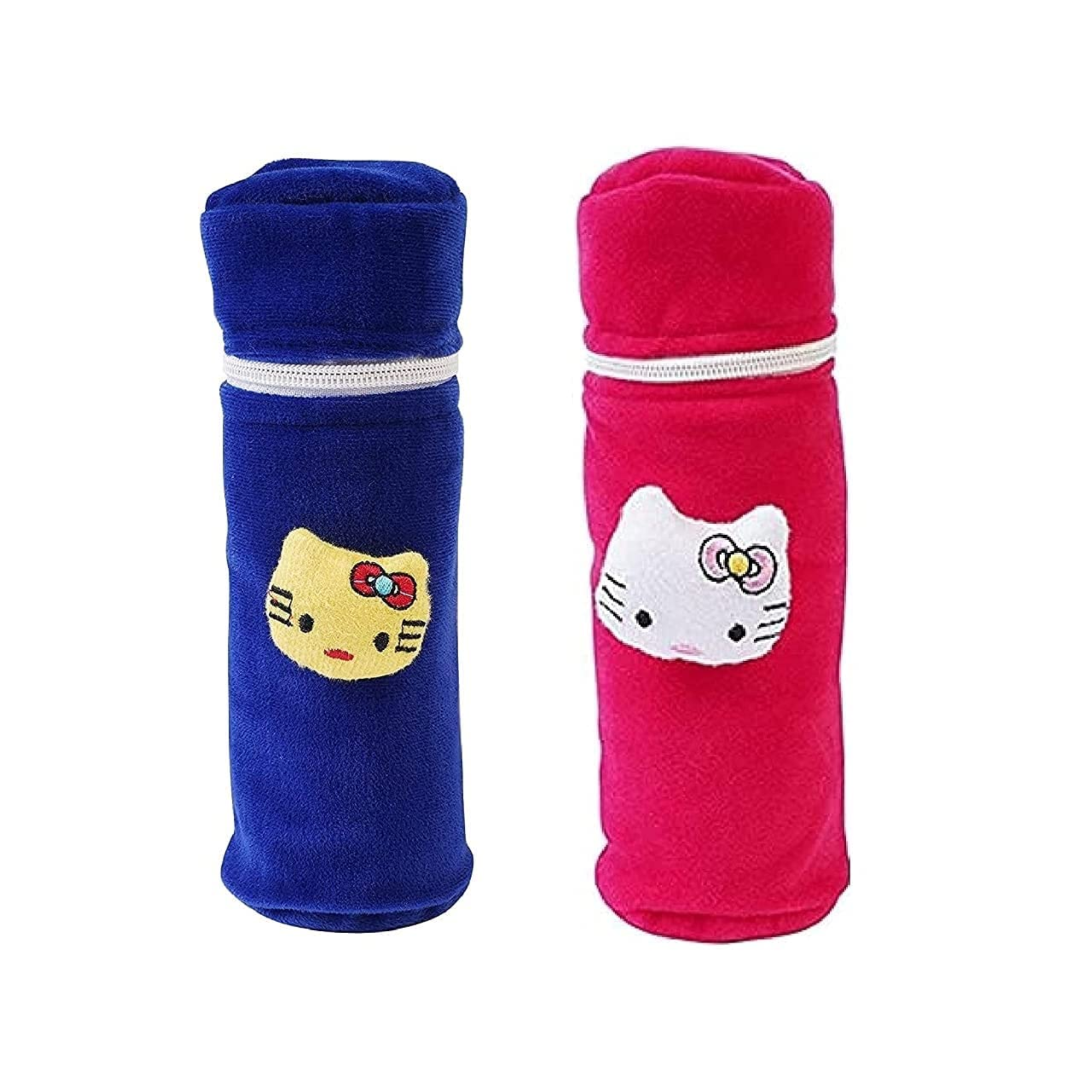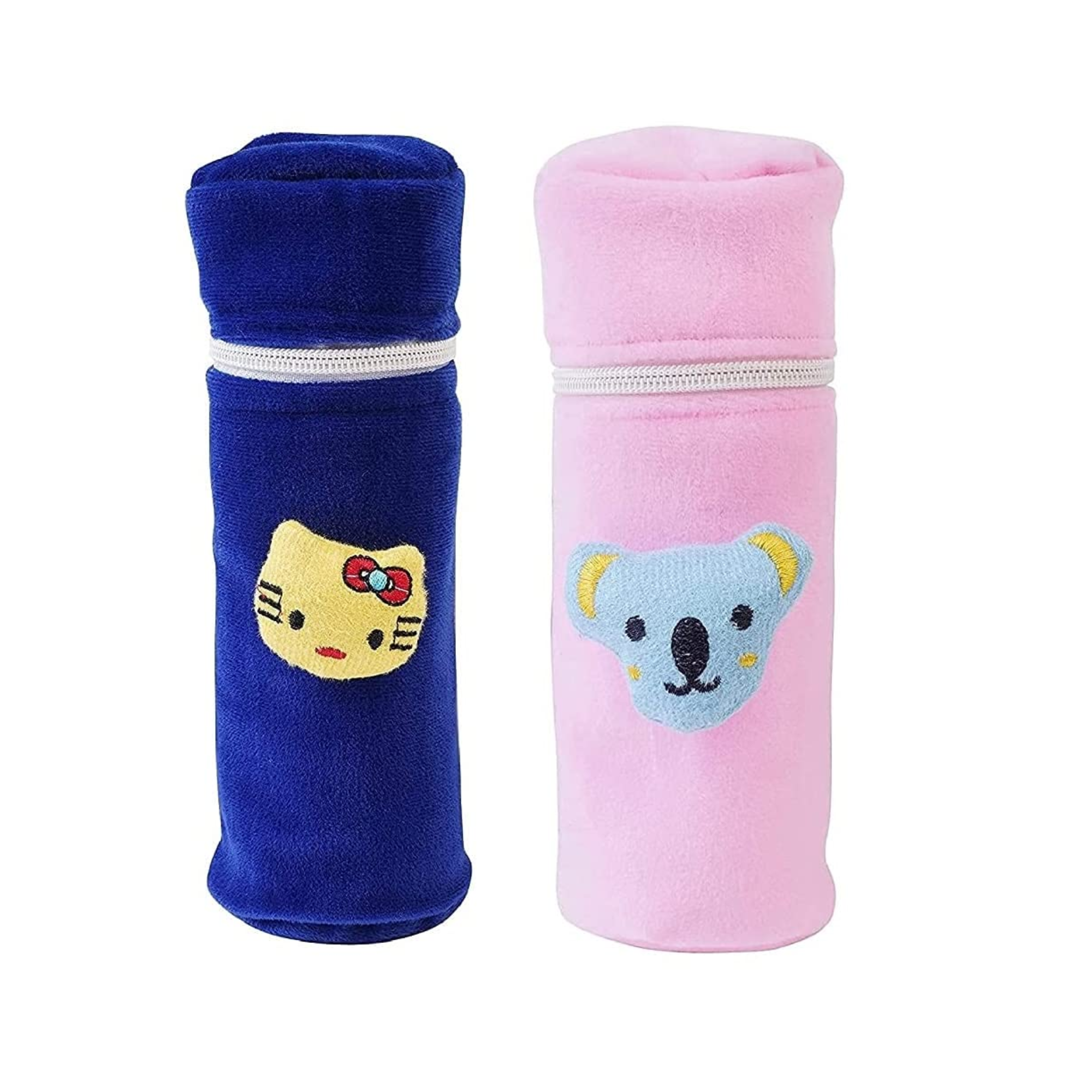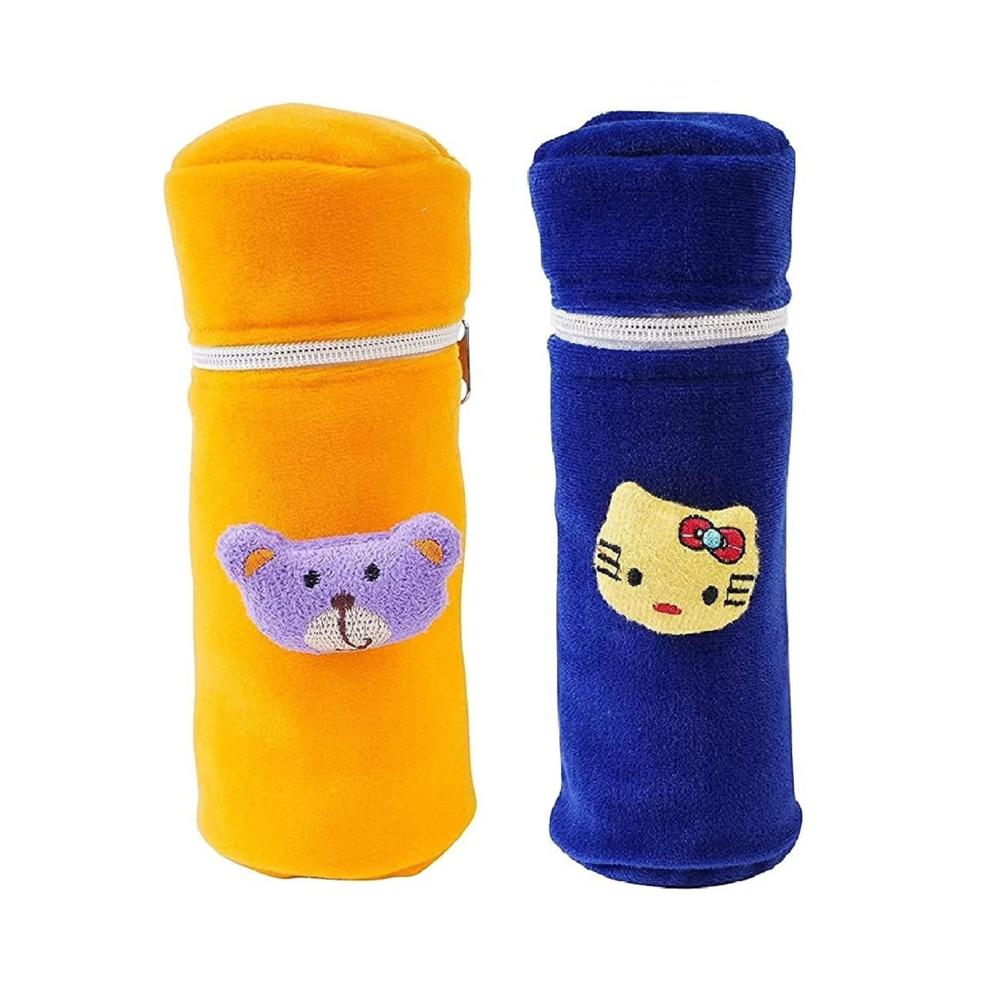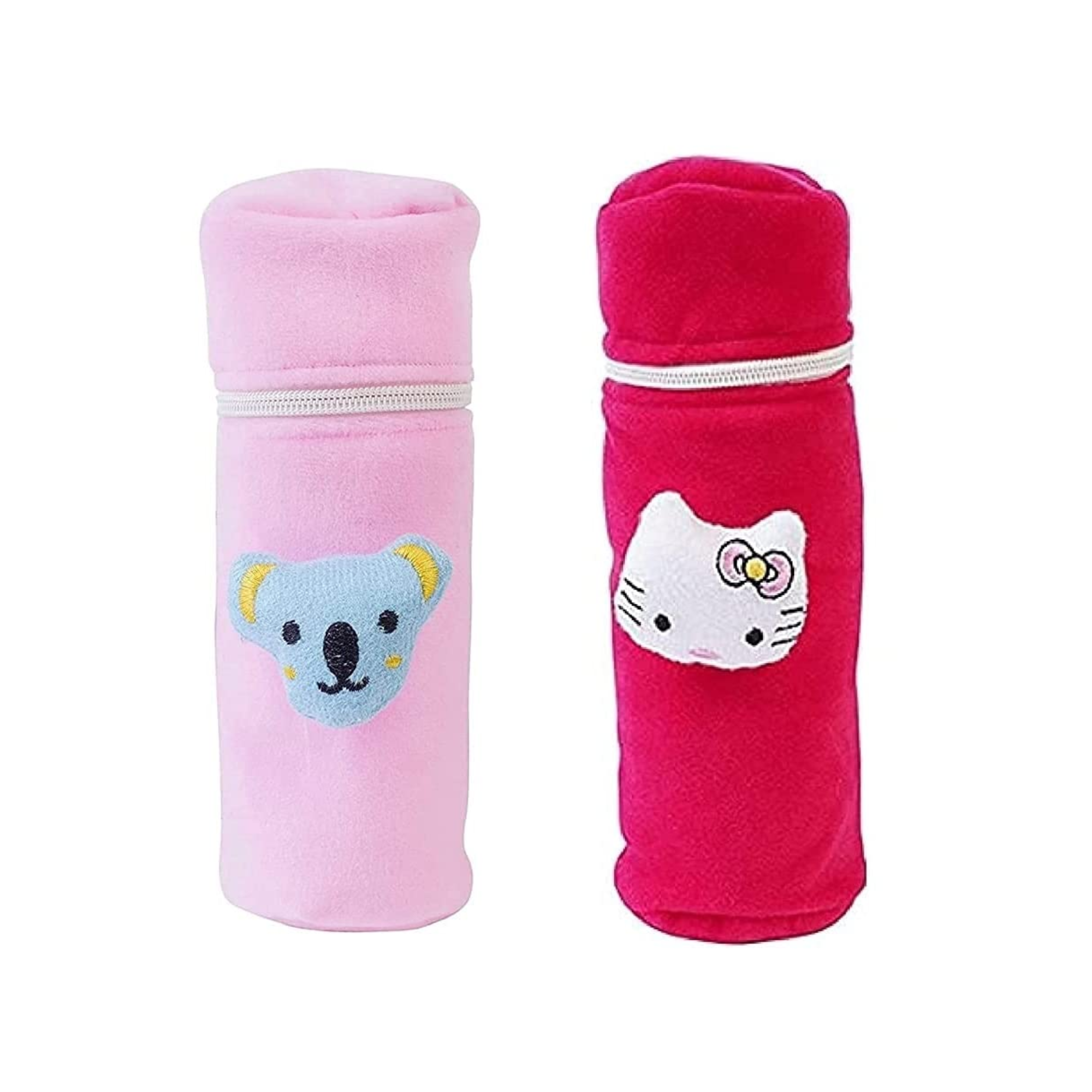 Soft Plush Stretchable Baby Bottle Covers with Zipper | 120–250 ml | Pack of 2 Cute Animated Design