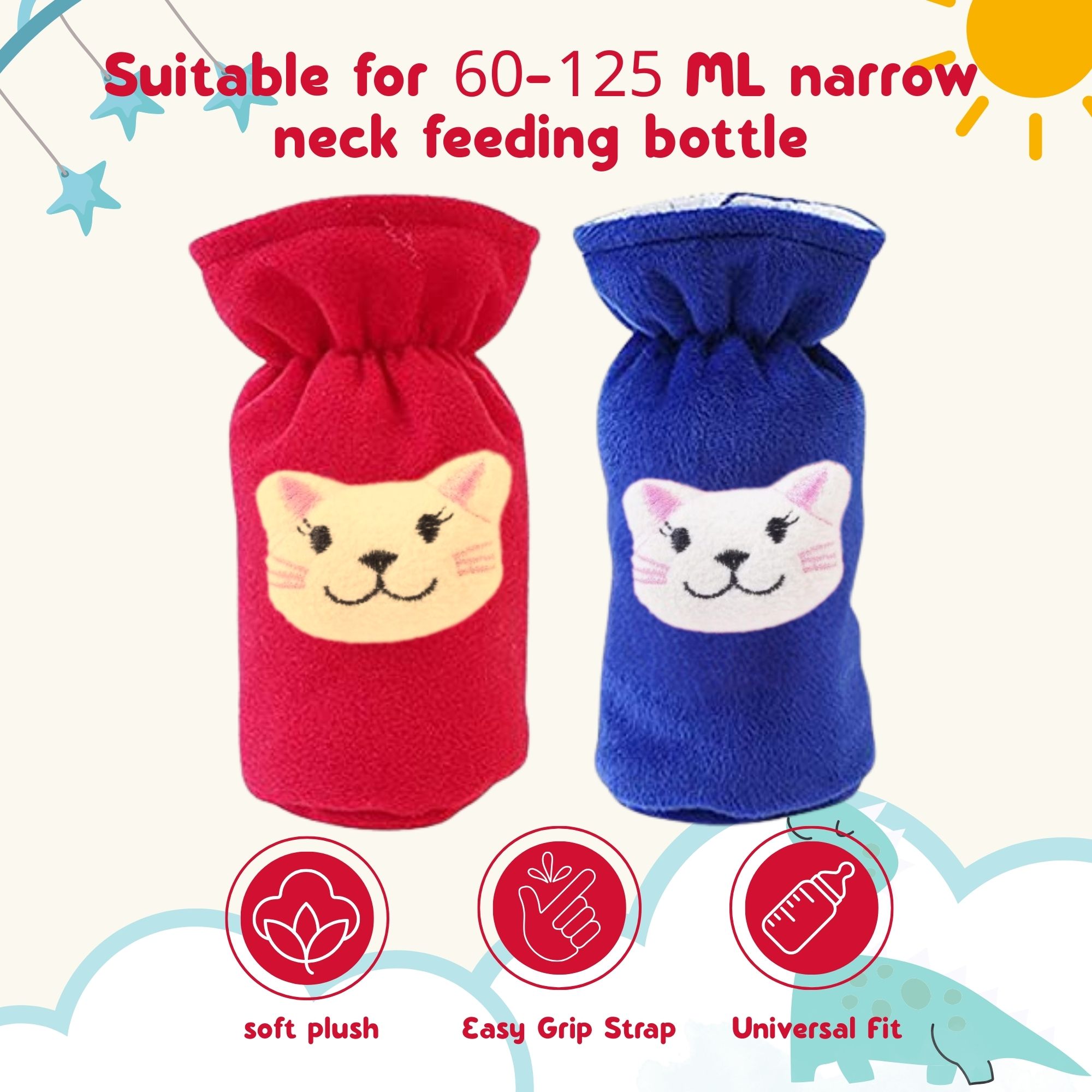 Soft Plush Baby Feeding Bottle Cover (Pack of 2) | Stretchable Bottle Sleeve 60-125 ml