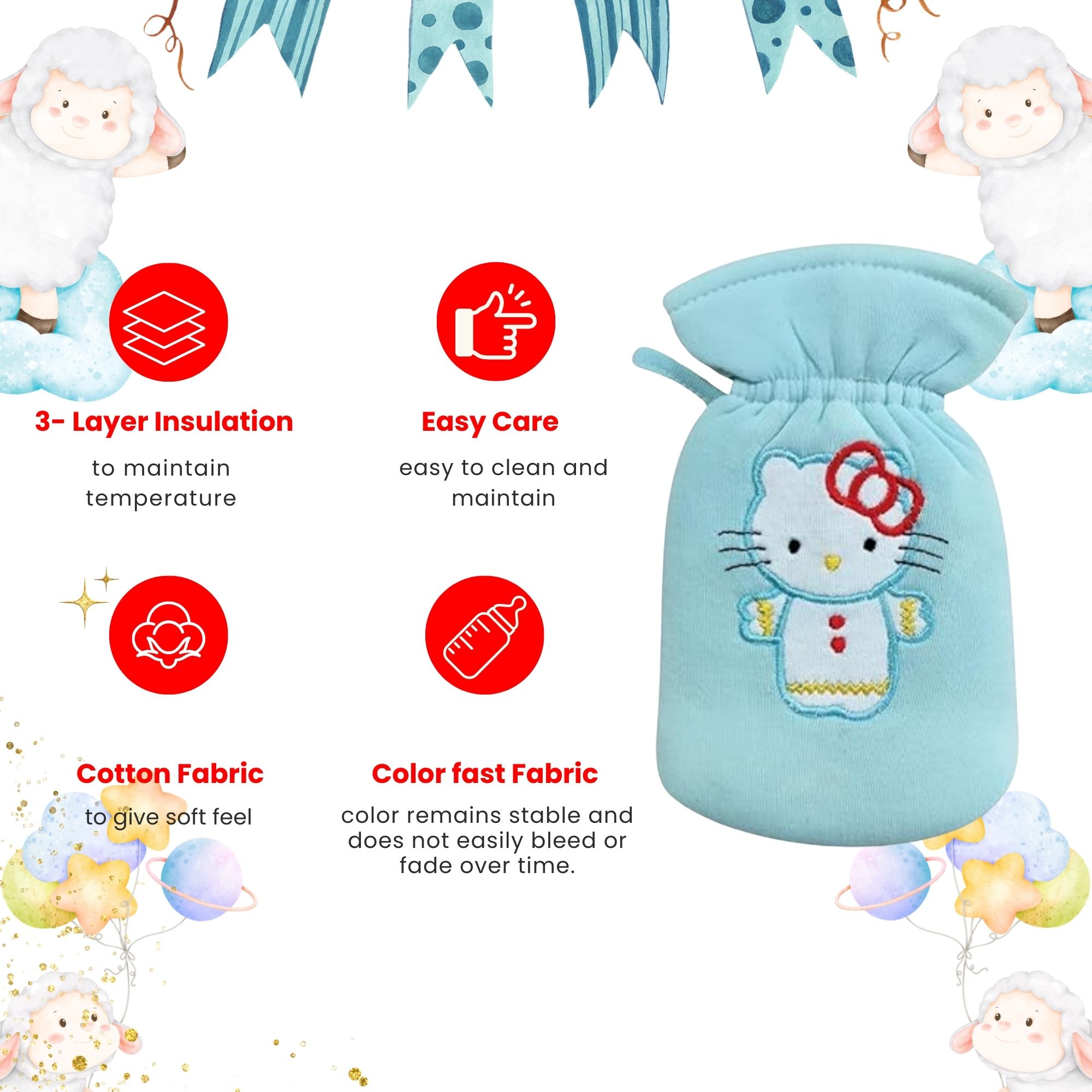 - Embroidered Cartoon Design – Adorable baby-friendly patchwork adds a playful touch to feeding time.