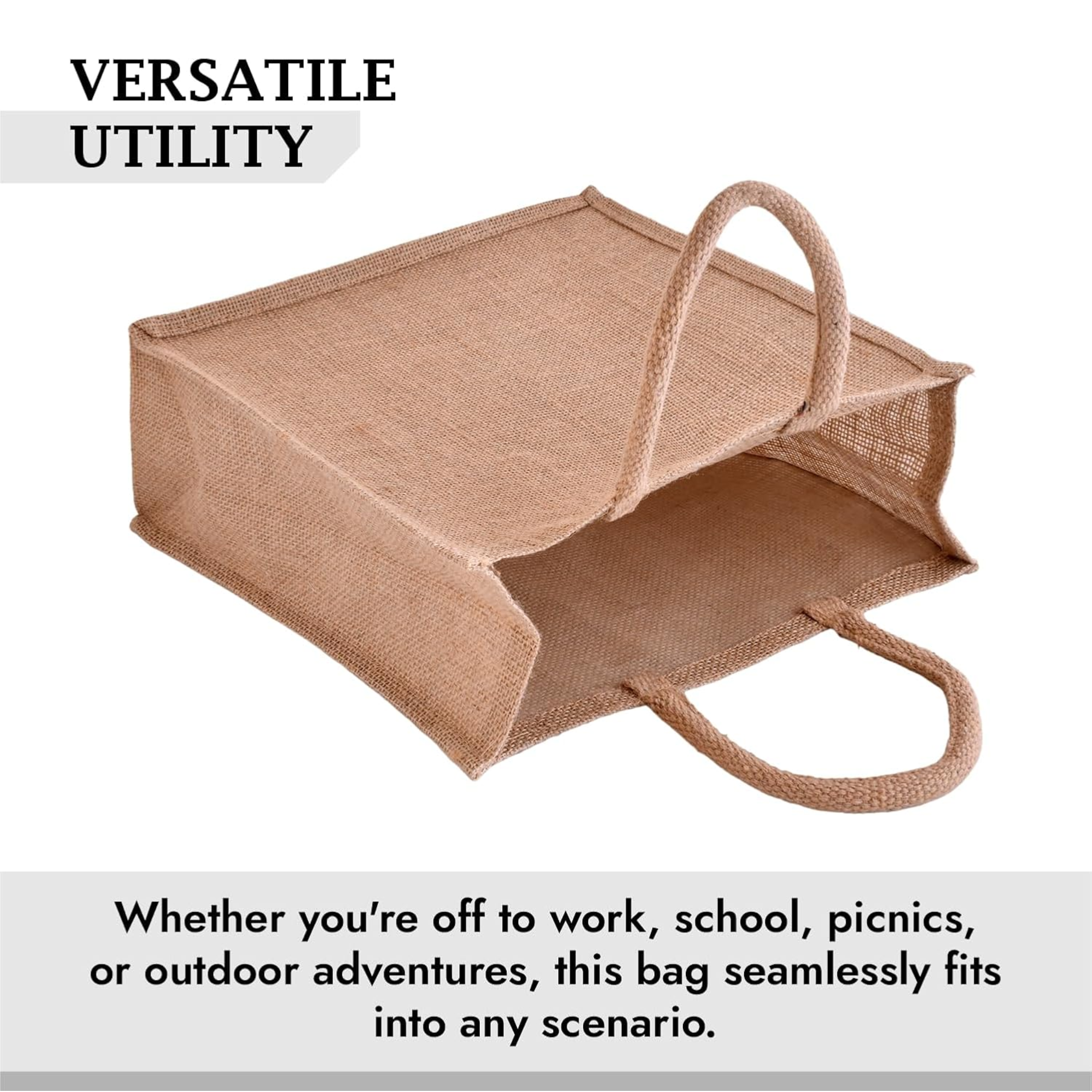 Jute Tote Bag | Lunch & Office Daily Use Bag with Zip and Handle for Unisex