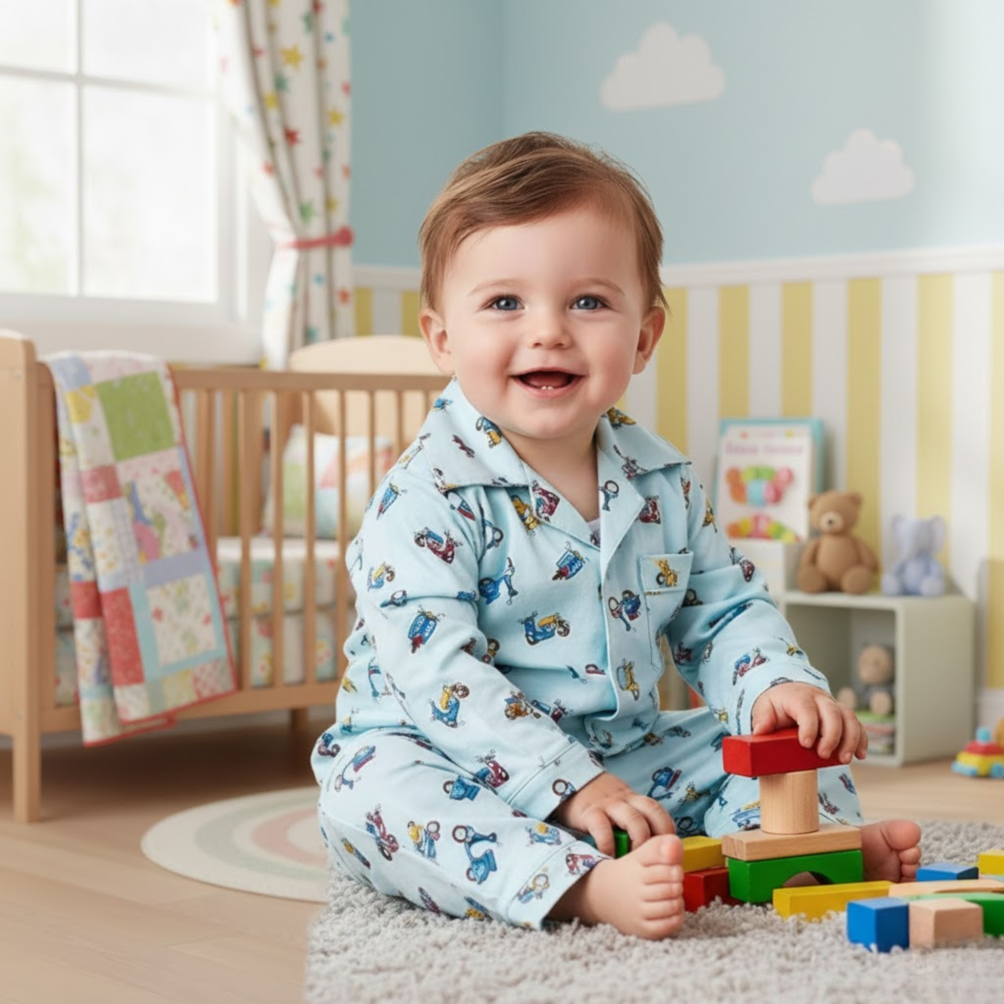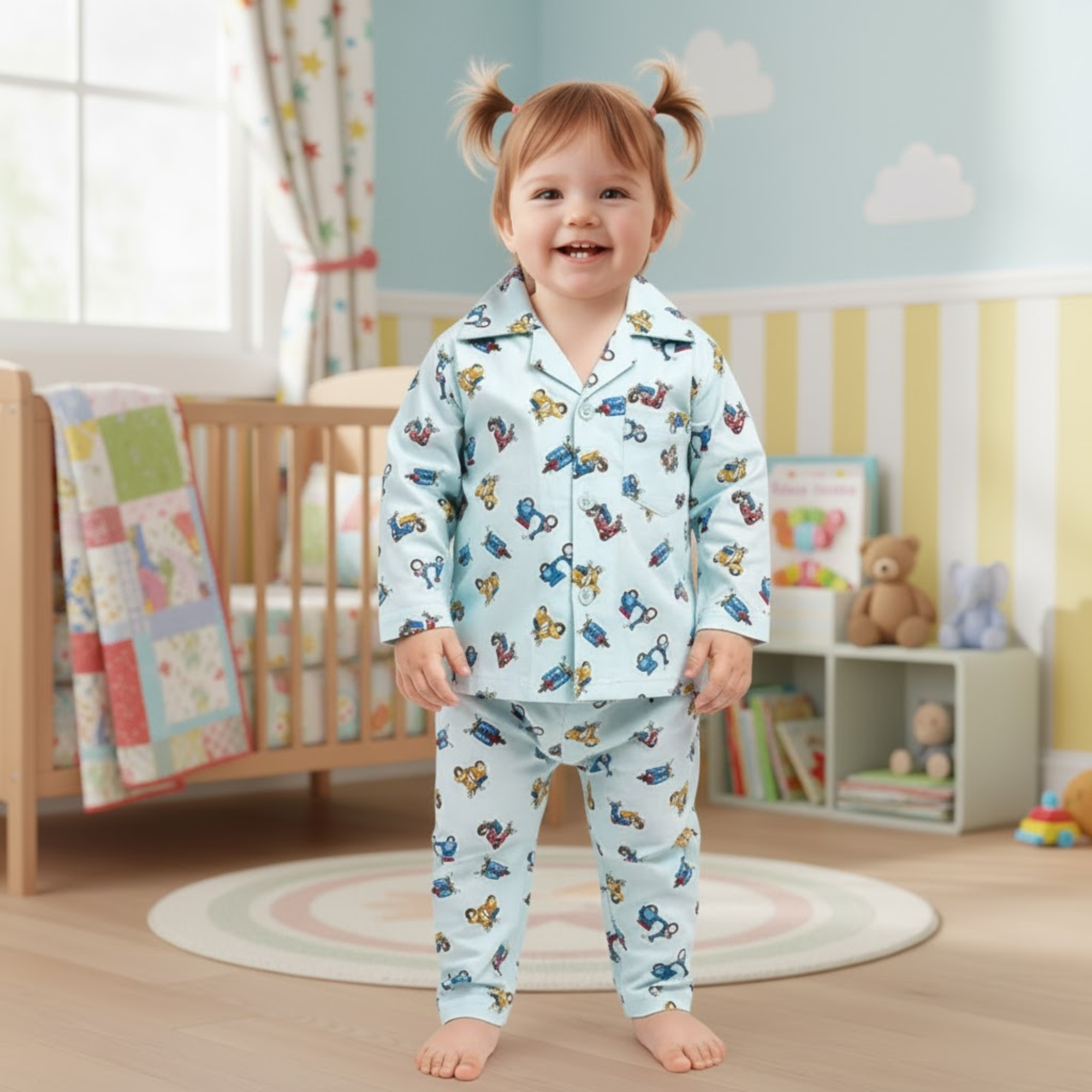 Soft hosiery cotton night suit designed for baby boys and girls. This cozy full-sleeve top with pockets and matching pajama keeps your little one warm, comfortable, and ready for a peaceful night’s sleep.