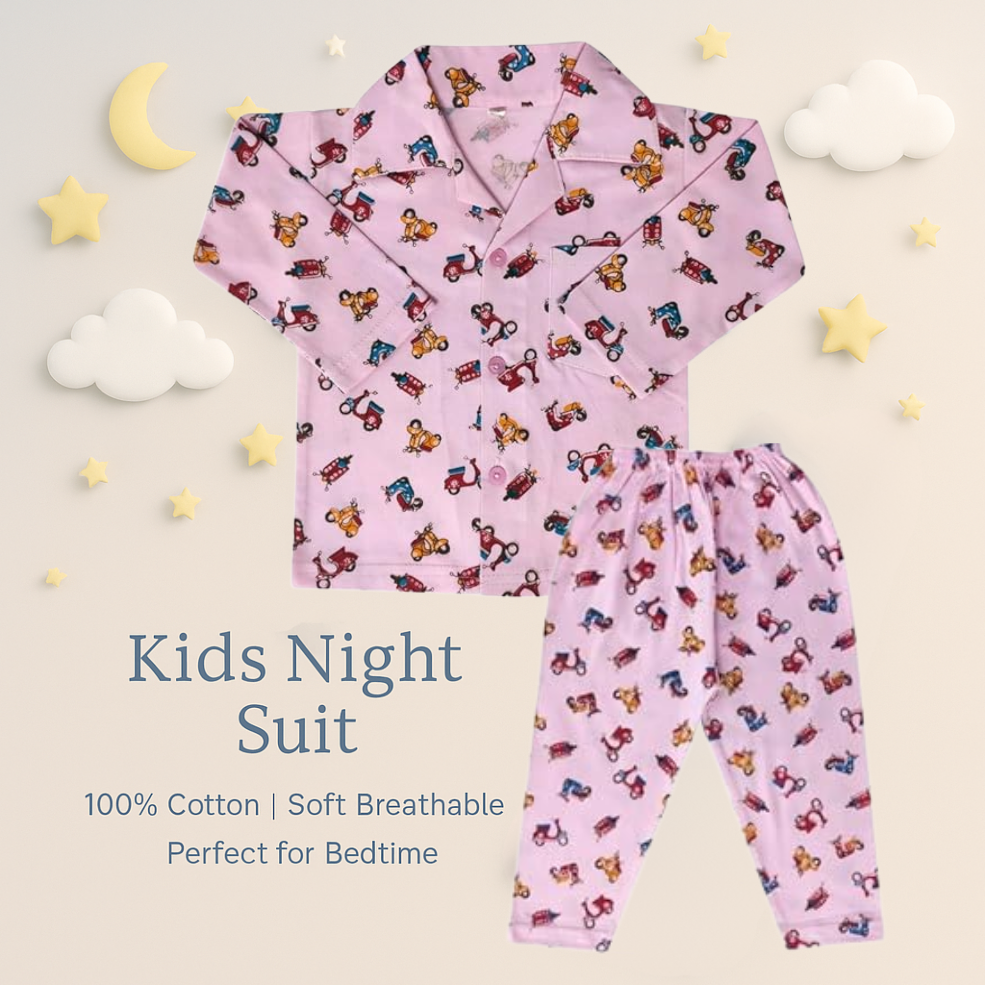 Soft hosiery cotton night suit designed for baby boys and girls. This cozy full-sleeve top with pockets and matching pajama keeps your little one warm, comfortable, and ready for a peaceful night’s sleep.