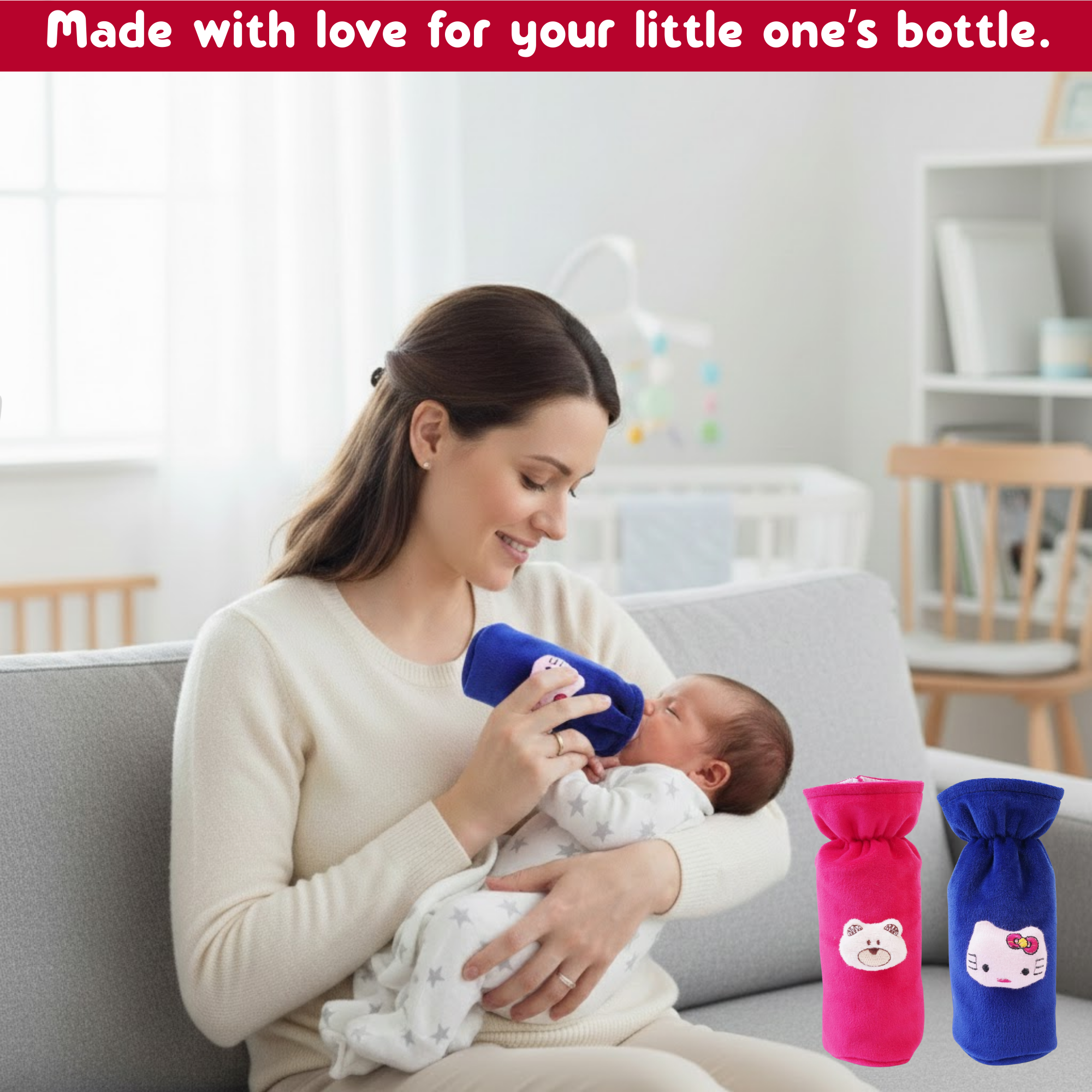 Keep your baby's feeding bottle warm, secure, and adorable with this soft plush stretchable cover featuring cute animated cartoon designs. Easy to hold and suitable for 130–250 ml bottles.