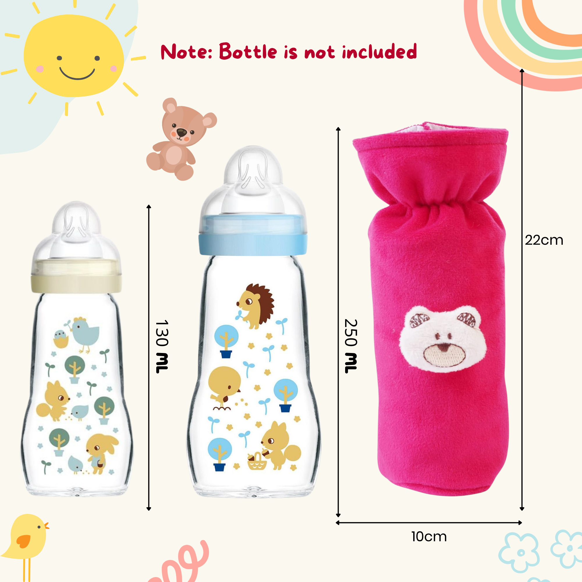 Wrap your baby's feeding bottle in comfort and style with our Soft Plush Stretchable Baby Feeding Bottle Cover. Crafted from premium plush fabric, this adorable accessory provides warmth, protection, and a secure grip for your baby’s bottle. The stretchable design ensures a snug fit for bottles ranging from 130 ml to 250 ml, while the easy-hold strap makes feeding time more convenient for both parents and babies.'