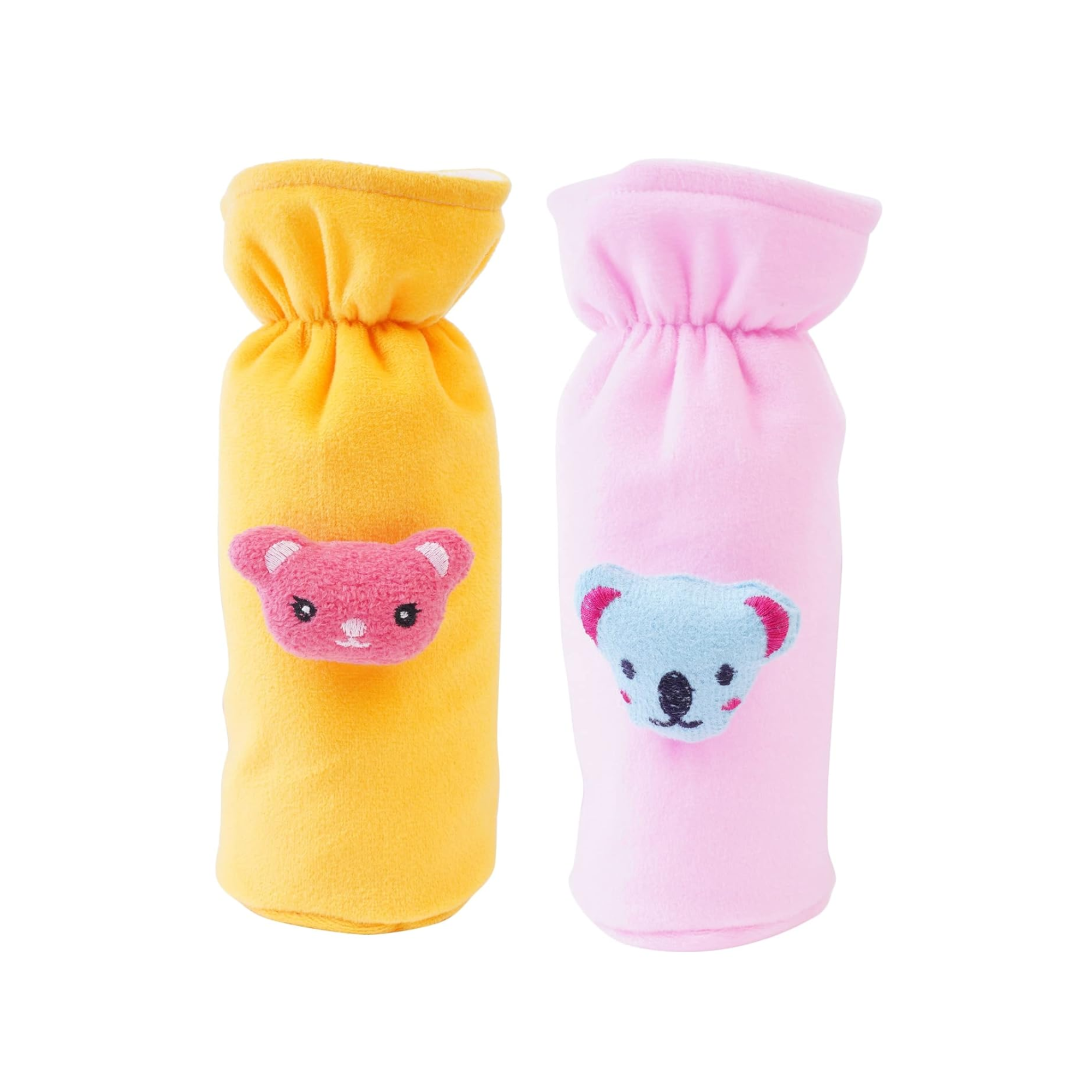 Keep your baby's feeding bottle warm, secure, and adorable with this soft plush stretchable cover featuring cute animated cartoon designs. Easy to hold and suitable for 130–250 ml bottles.