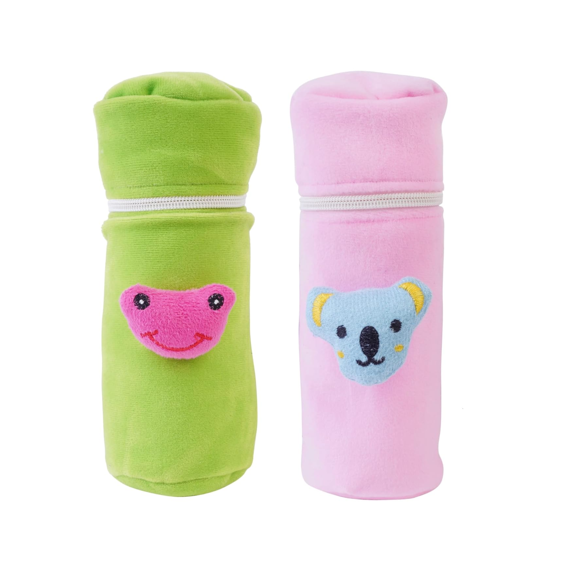 Soft Plush Cartoon Baby Feeding Bottle Cover with Stretchable Strap | Fits 130-250 ml