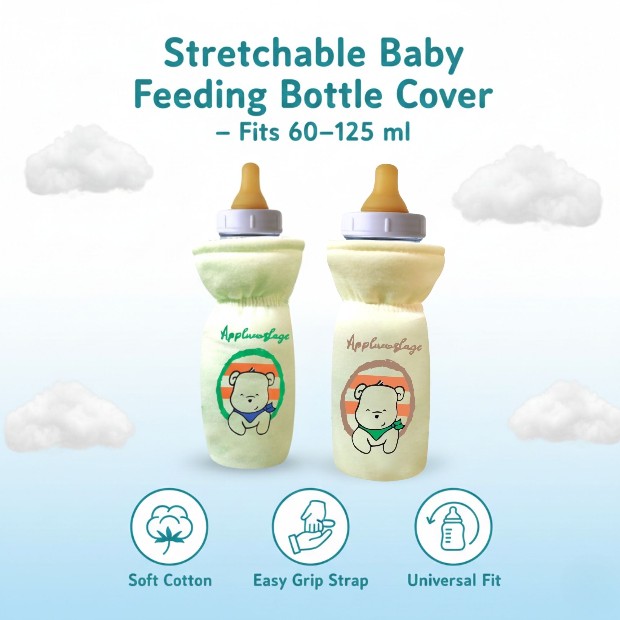 Stretchable Baby Feeding Bottle Cover with Easy Grip Strap | Fits 60–125 ml