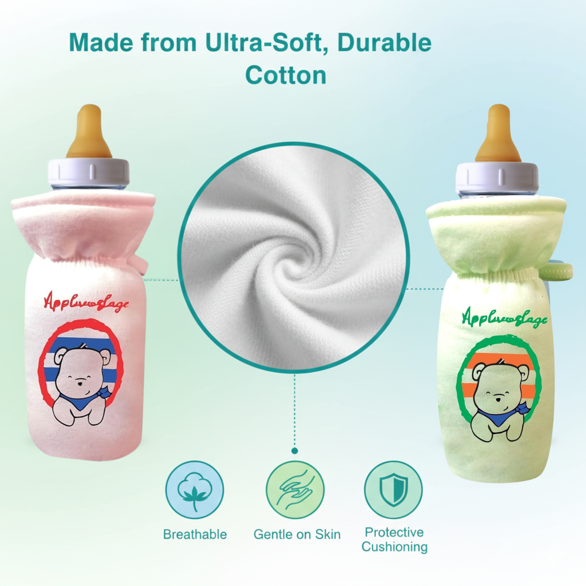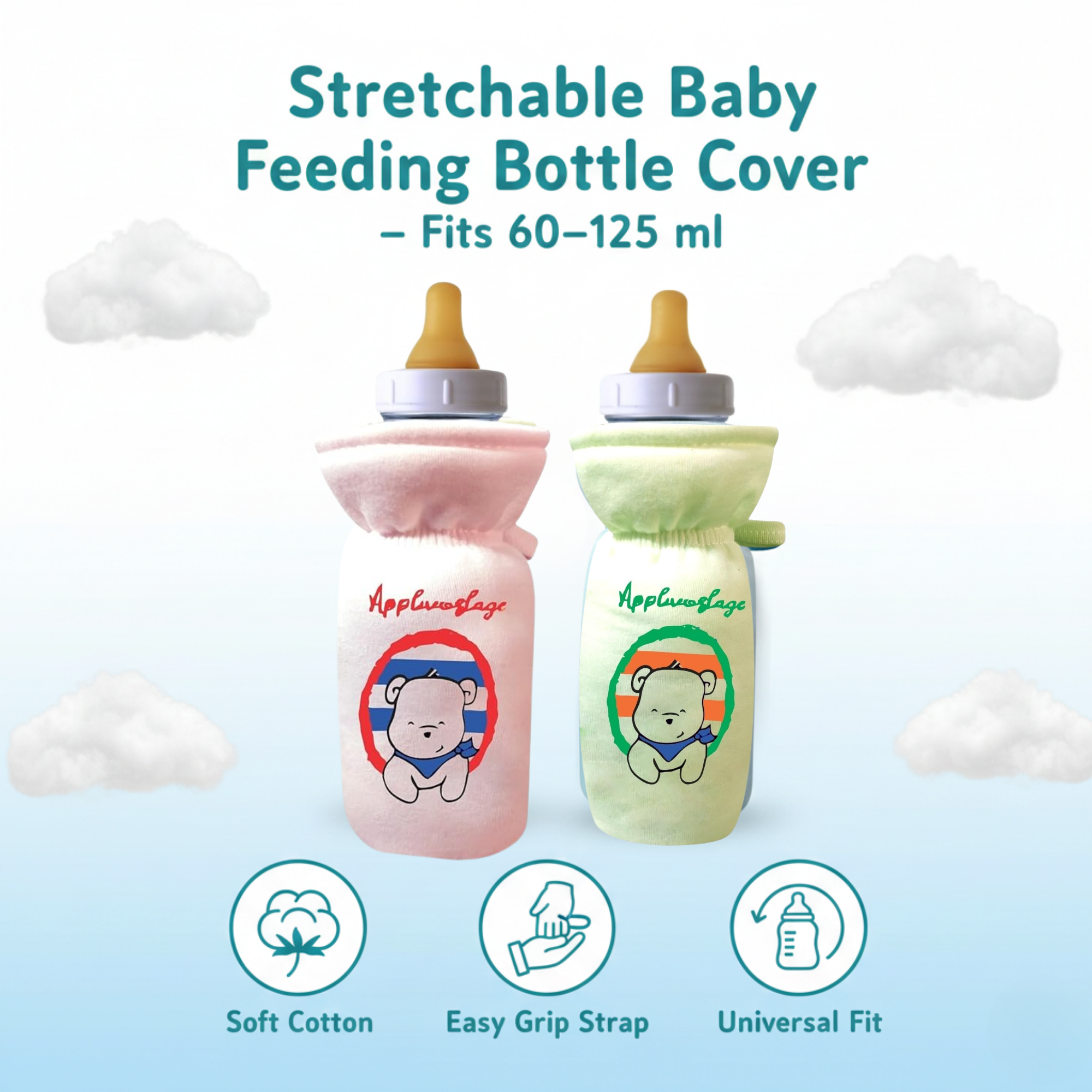 A soft, stretchable baby feeding bottle cover with a convenient easy-hold strap. Designed to fit 60–125ml bottles, it provides insulation, grip, and protection for little hands during feeding time.