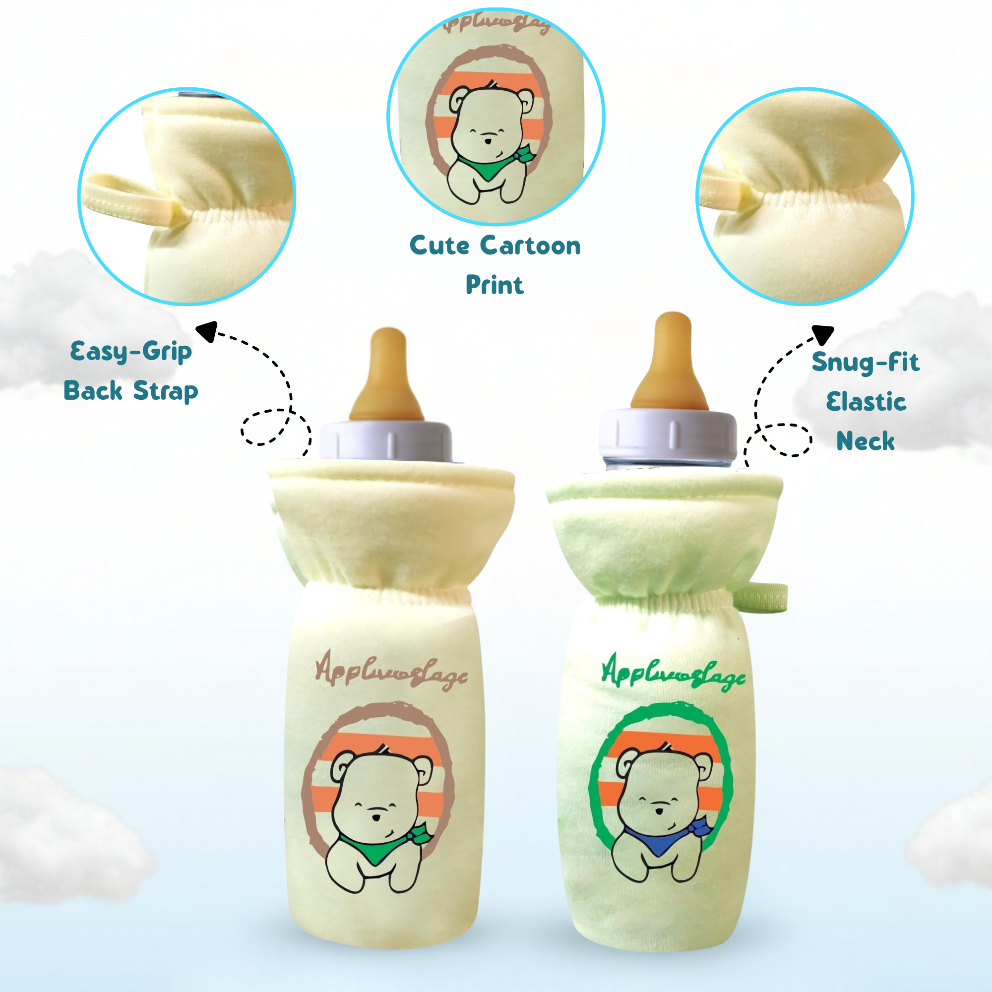 Stretchable Baby Feeding Bottle Cover with Easy Grip Strap | Fits 60–125 ml